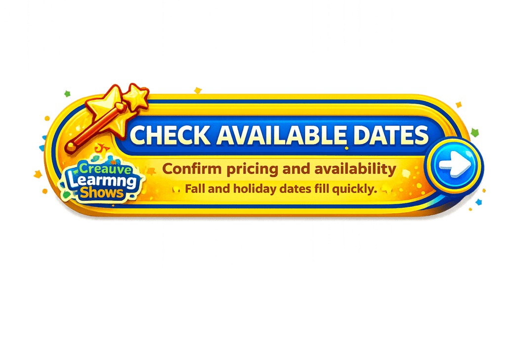 Creative Learning Shows are ideal for daycares, preschools, libraries, schools, camps, and family events. Our programs are fully managed and stress-free for directors, teachers, and organizers.