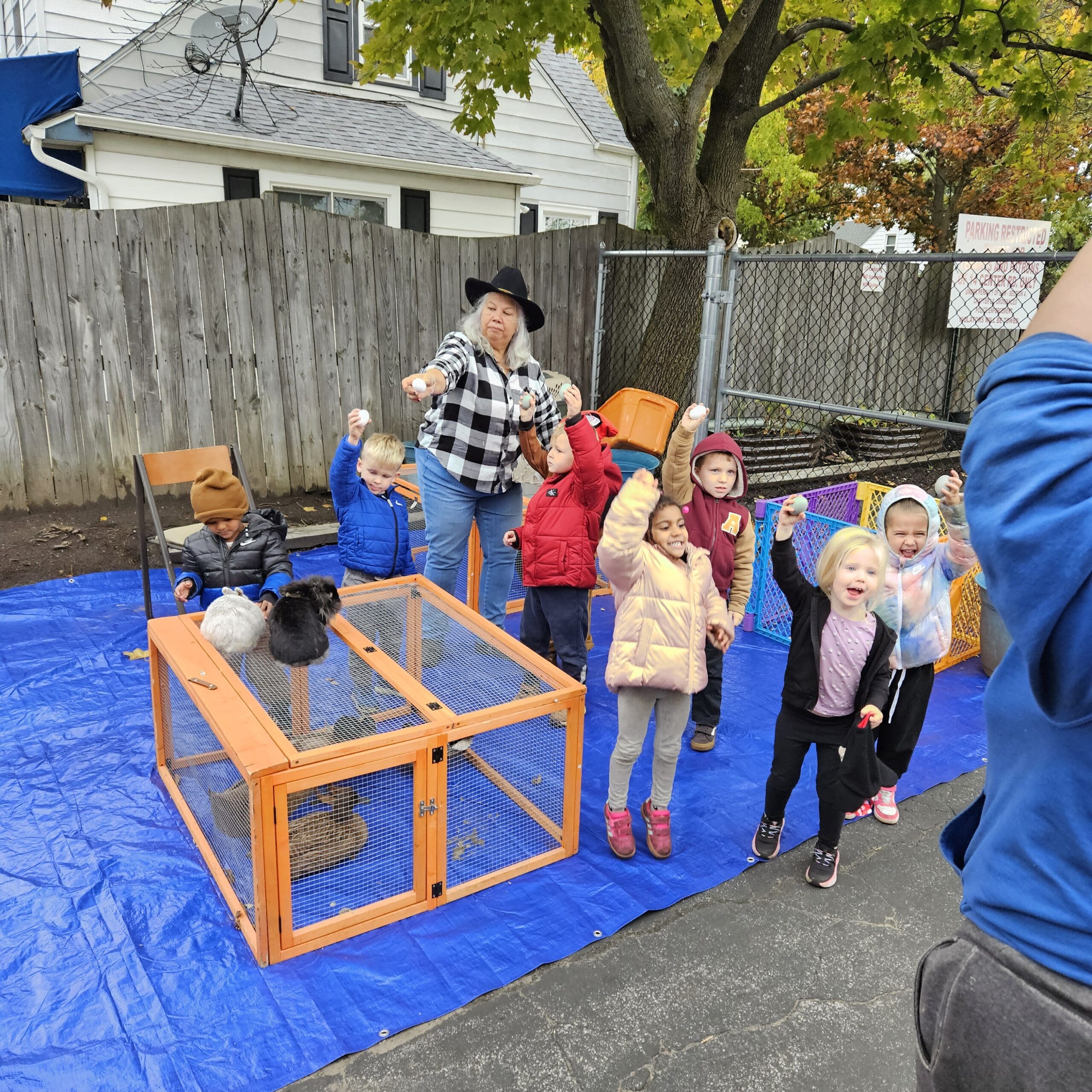 Our mobile pumpkin patch transforms any playground, parking lot, or grassy area into a photo-ready fall festival featuring: live ducks, rabbits, and chickens; each child receiving their own pumpkin; class scarecrow-making; vibrant fall décor; curriculum-friendly animal and harvest lessons; and a high-energy magic show that ends the day with excitement and laughter.